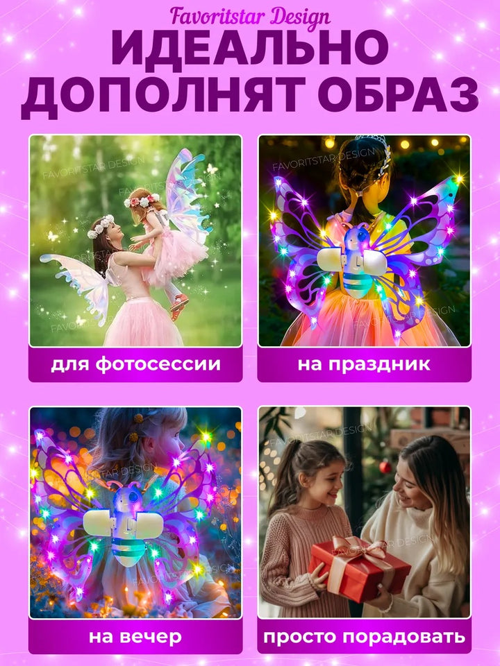 - 🧚 Aripi luminoase cu LED-uri – efecte spectaculoase și culori vii care încântă copiii.