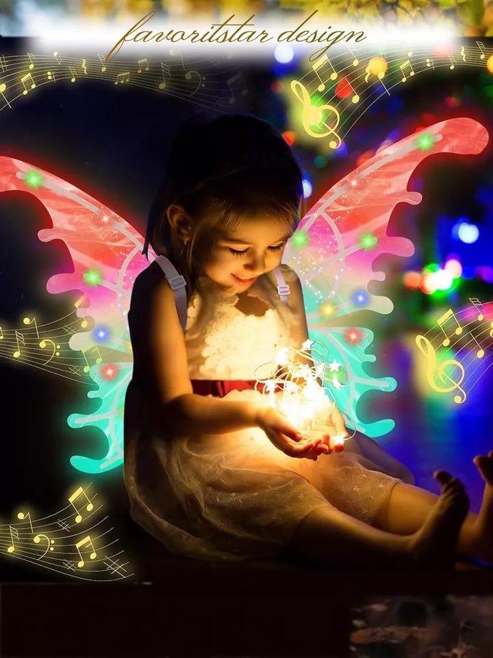 Fă fiecare joacă specială cu aceste aripi muzicale luminoase! Perfecte pentru fetițe care iubesc magia, dansul și poveștile cu zâne.