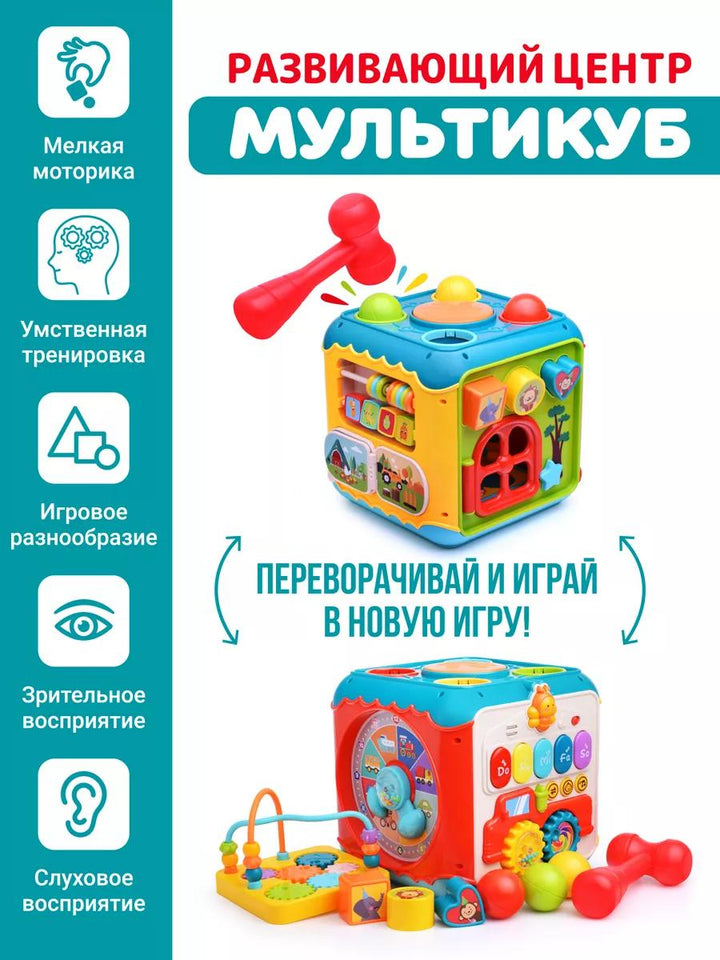 Un adevărat univers de joacă și învățare într-un singur cub! Acest centru educațional 7-în-1 stimulează creativitatea, coordonarea și dezvoltarea cognitivă prin multiple activități distractive.