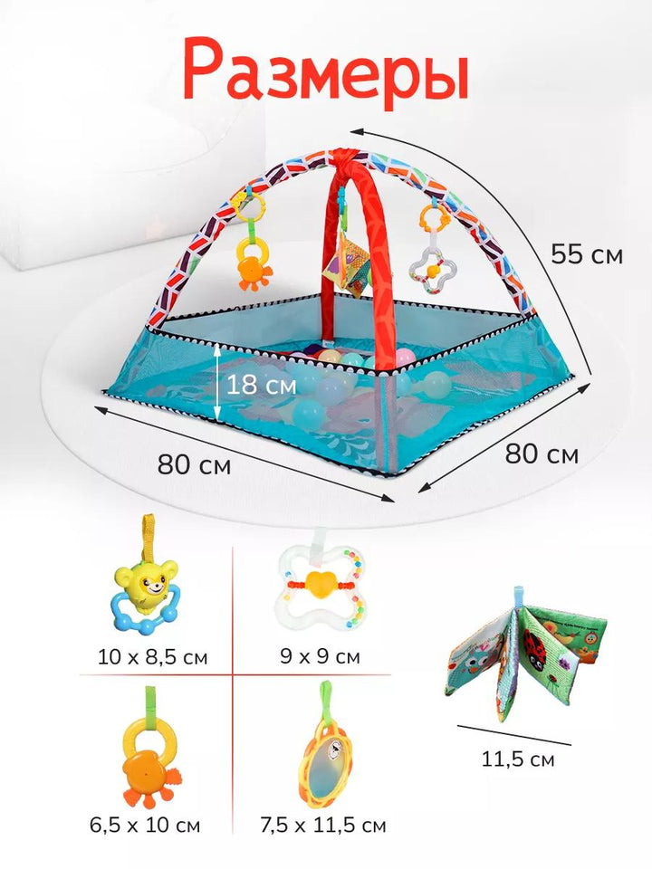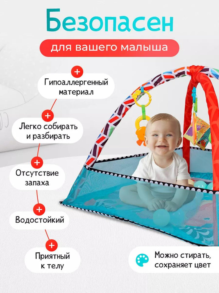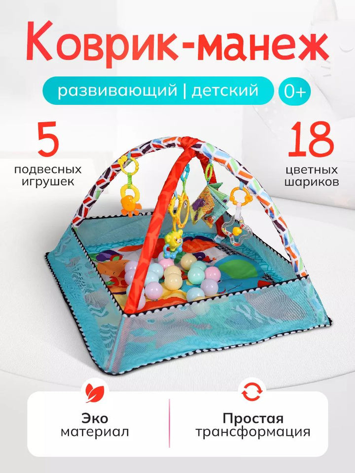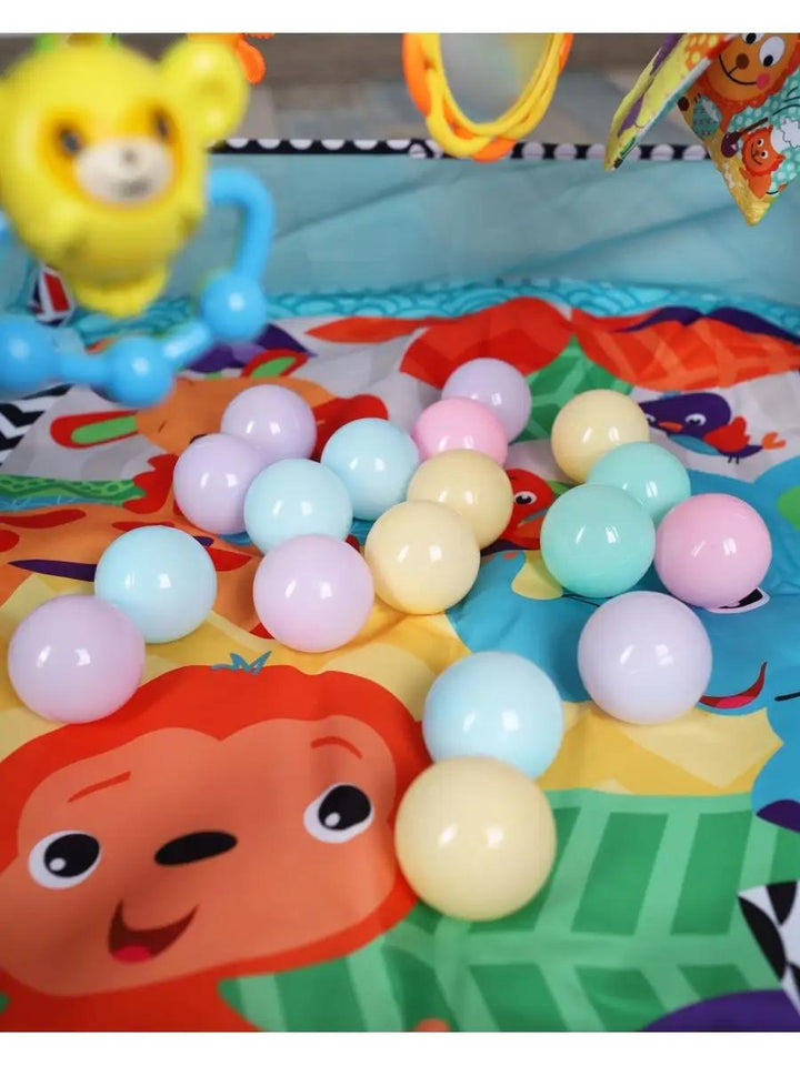 Oferă-i micuțului tău un spațiu de joacă sigur și educativ! Covorașul-manej stimulează dezvoltarea senzorială și motrică prin jucării colorate și bile distractive.