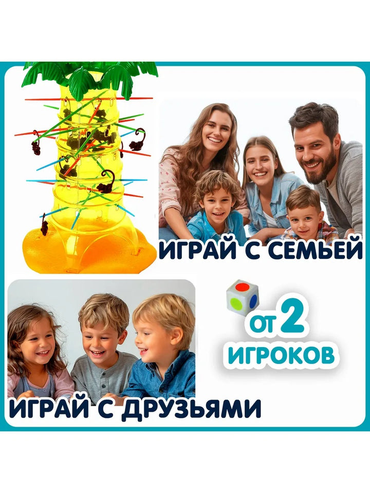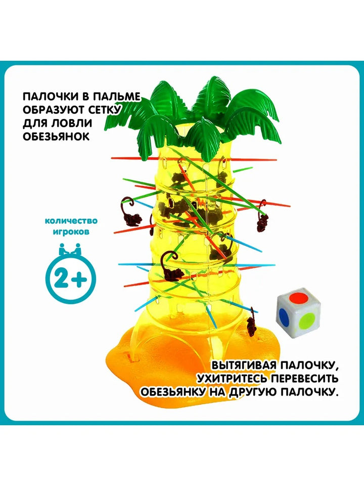 Un joc distractiv și educativ pentru întreaga familie! Scopul este simplu: jucătorii scot pe rând bețișoare colorate din palmier, având grijă ca maimuțele să nu cadă! Jocul dezvoltă atenția, coordonarea și răbdarea într-un mod plin de amuzament.