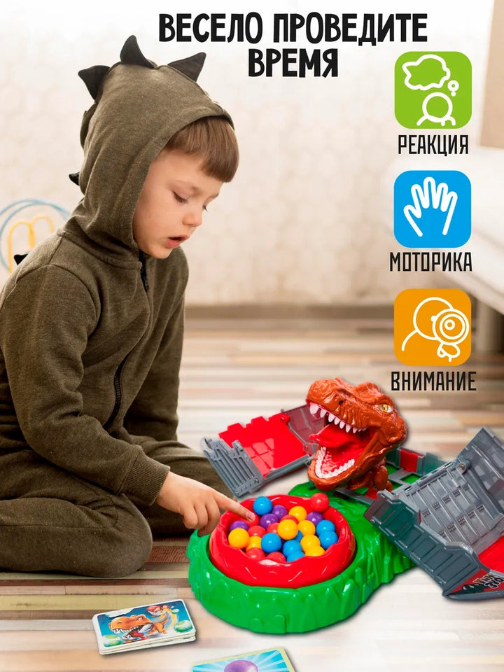 Setul conține dinozaurul interactiv, bile colorate, bețișoare speciale și cărți de joc pentru variante multiple de competiție. Fiecare rundă aduce râsete și suspans, iar regulile simple îl fac perfect pentru serile în familie sau joaca cu prietenii.