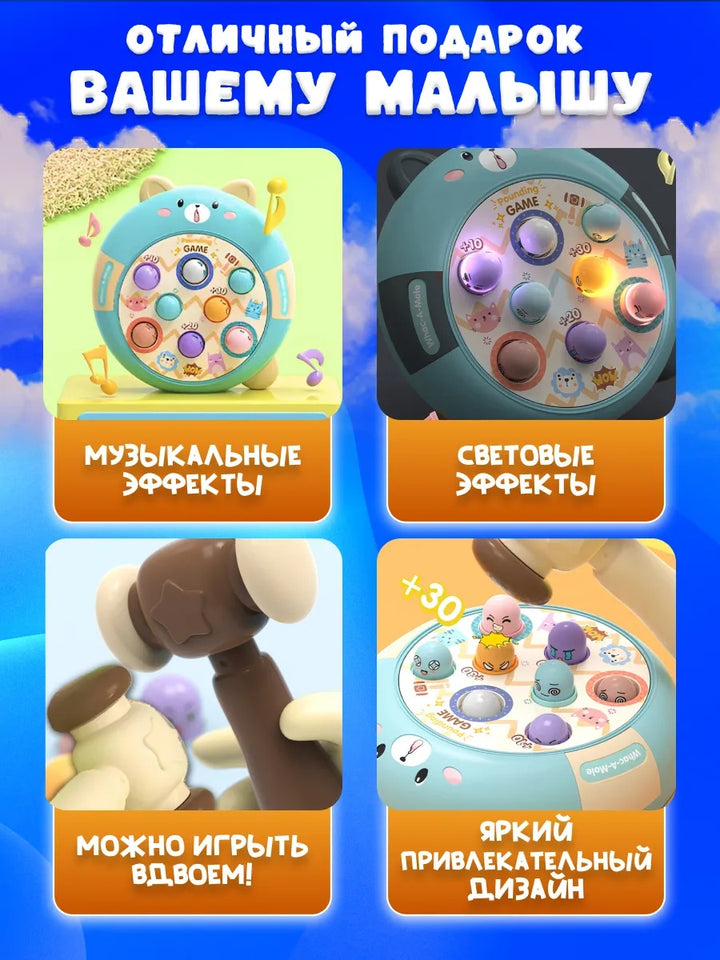 Copiii se vor distra lovind cârtițele care apar și dispar, învățând în același timp coordonarea și concentrarea. Este o alegere excelentă pentru activitățile de familie, petrecerile pentru copii sau pentru dezvoltarea timpurie prin joacă interactivă.