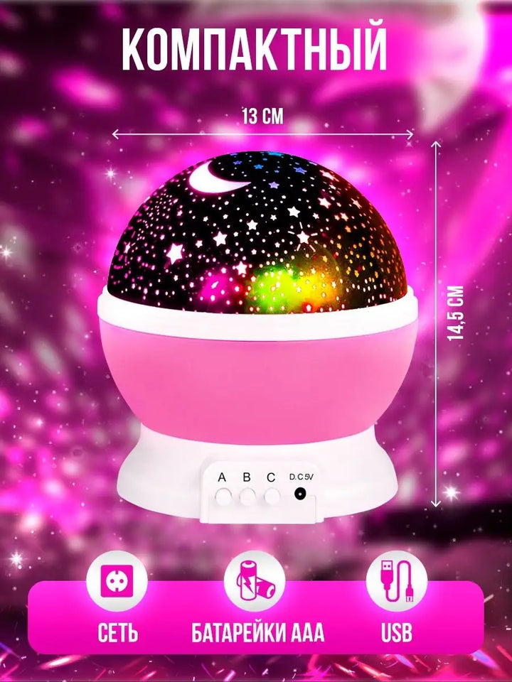 Lampa proiector „Cer înstelat” transformă camera copilului într-un colț de basm! Proiectează pe pereți și tavan un cer plin de stele și lună în culori vii, ajutând copilul să adoarmă liniștit și fără frica întunericului.
