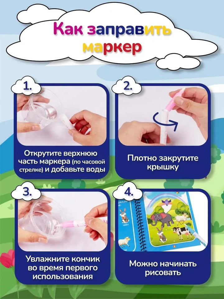 - 🖊️ Marker special inclus – se umple cu apă și e gata de joacă