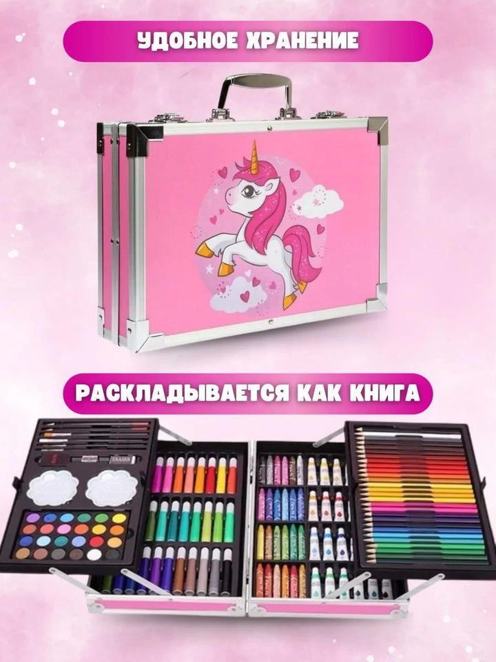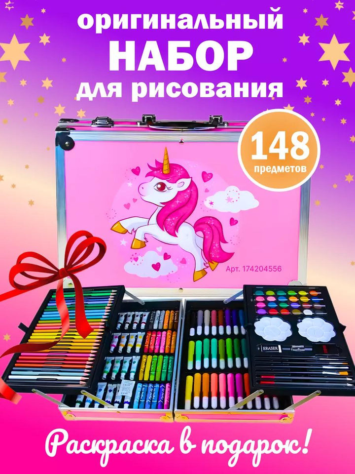 Descoperă lumea magică a culorilor cu Setul de Desen 148 Piese cu Unicorn!