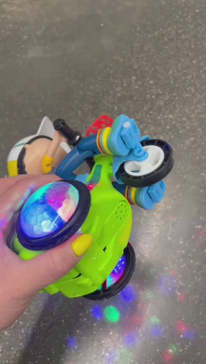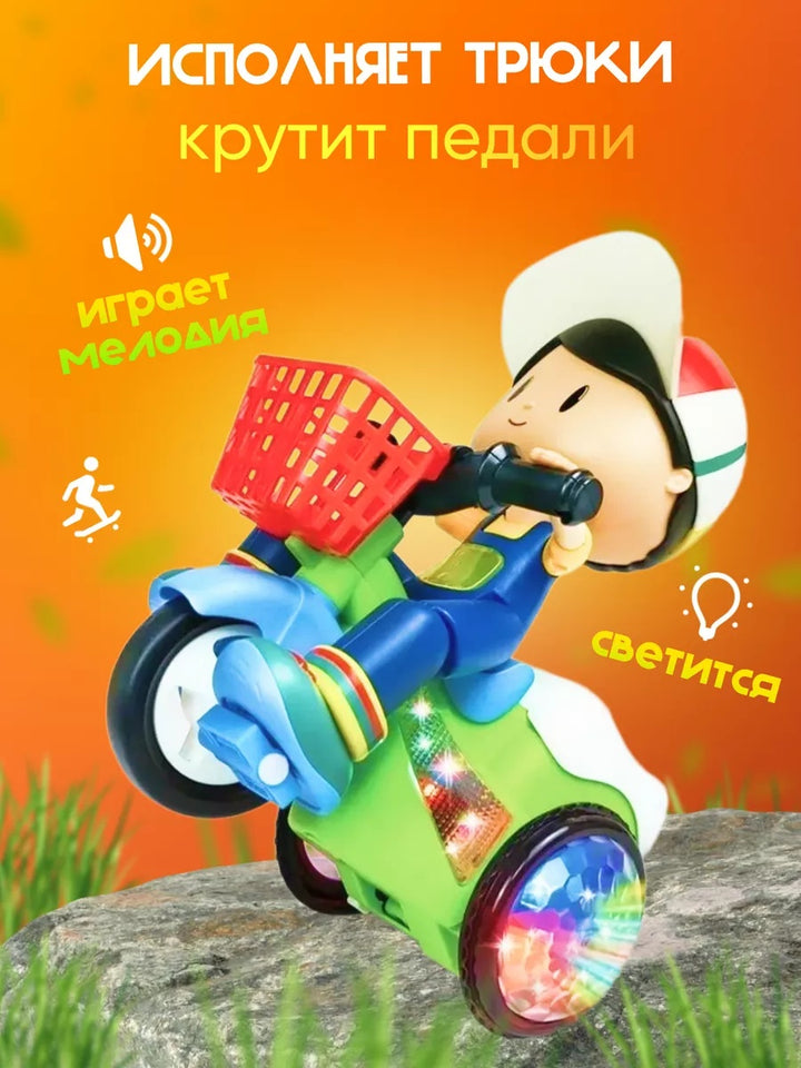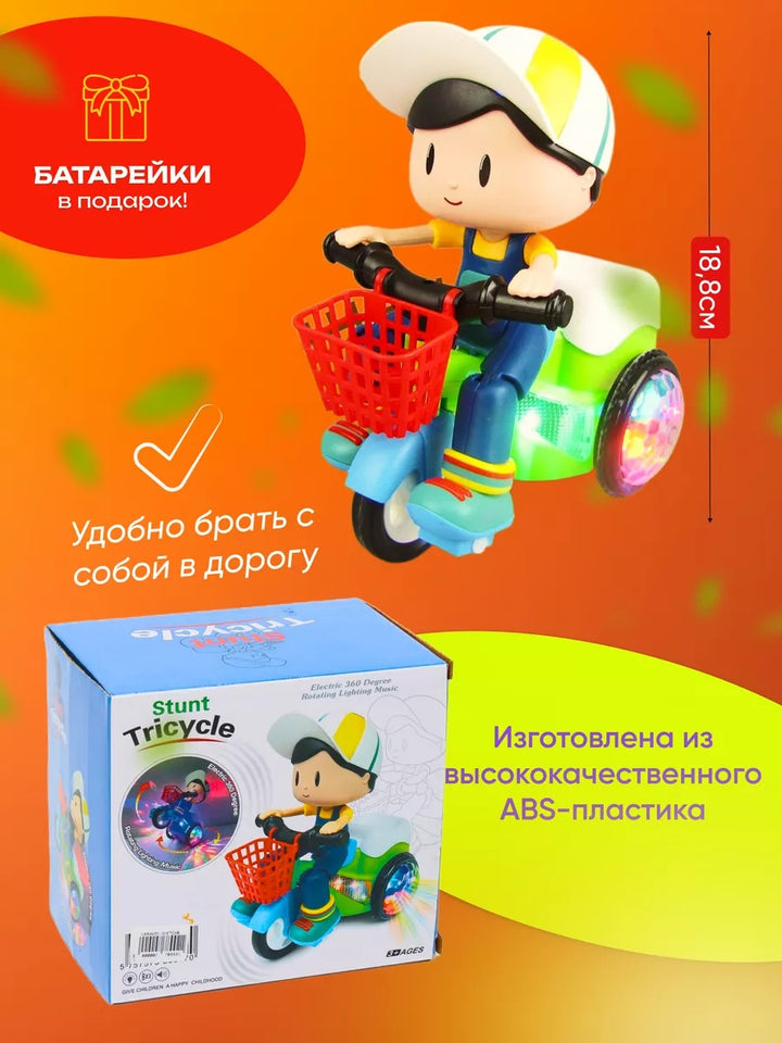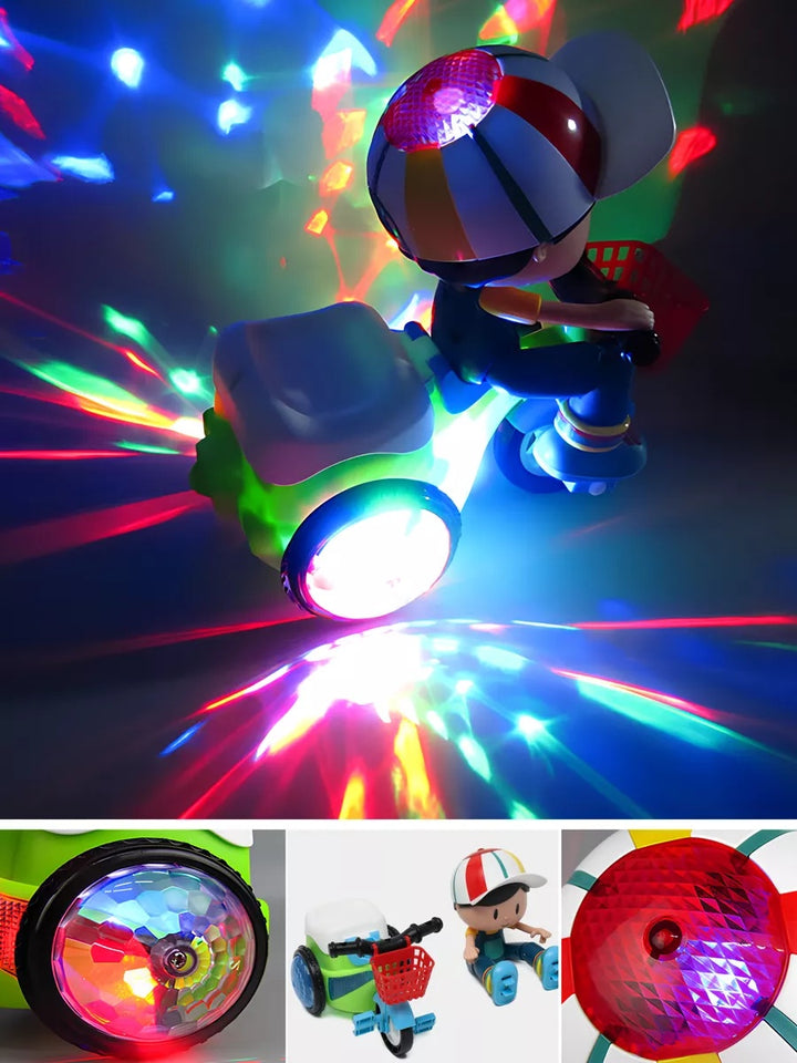 Jucăria muzicală cu tricicletă aduce bucurie și energie în joaca celor mici! Se mișcă, se rotește la 360°, luminează în culori strălucitoare și redă melodii vesele care îi atrag imediat pe copii.